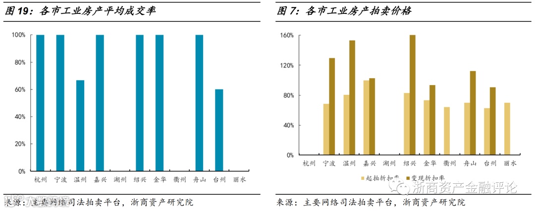 (三)工业房产:成交率下滑,但变现折扣率高位反弹;宁波、温州、绍兴变现与起拍价差较大