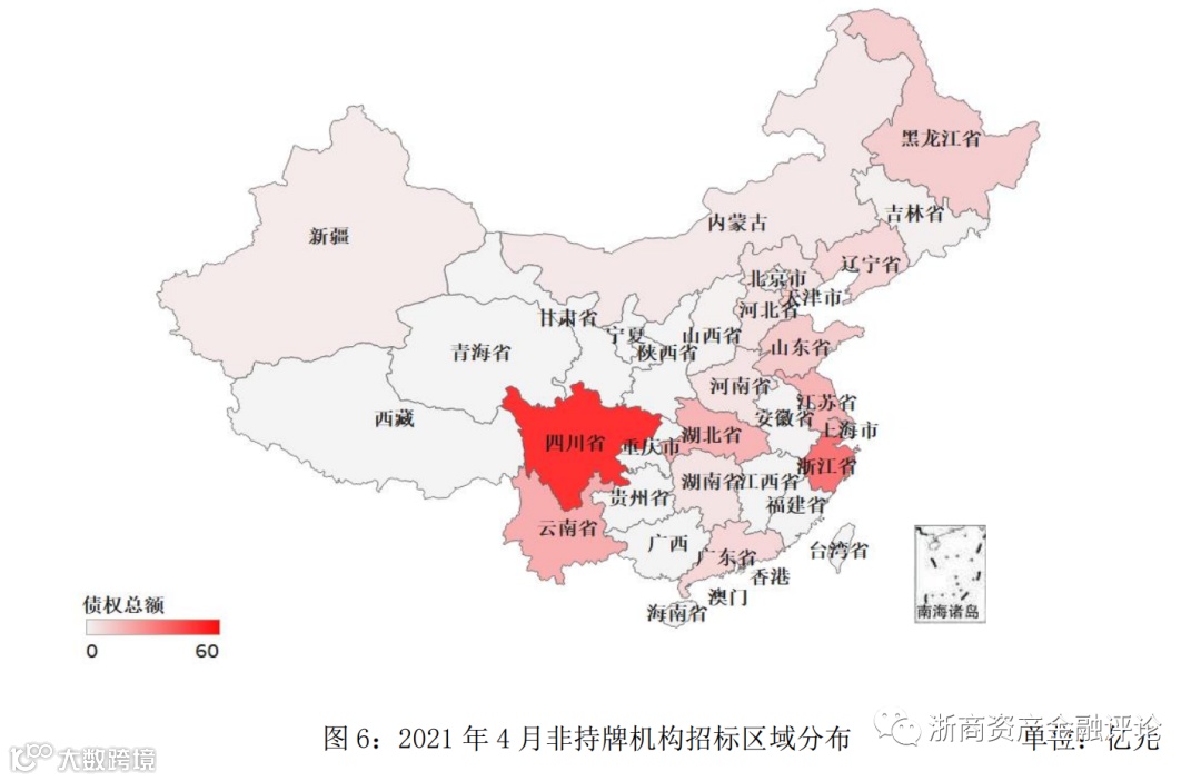 从非持牌机构招标的区域分布情况来看,四川省非持牌市场招标约为60亿元,占比23.9%;浙江省非持牌市场招标约为40亿元,占比15.9%;云南省非持牌市场招标约为22亿元,占比8.8%。
