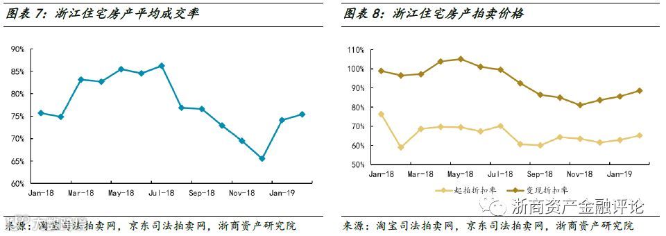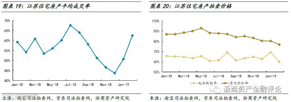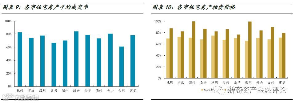 (一)住宅房产:成交率继续大幅上升,变现折扣率处于下降通道;南京、常州成交率高于其他城市,与浙江相比变现起拍价差相对更小