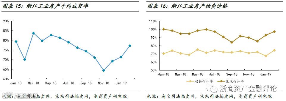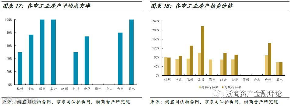 (三)工业房产:成交率、变现折扣率继续回升;温州、嘉兴、台州变现与起拍价差很大