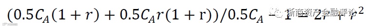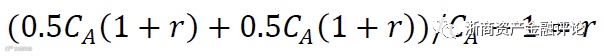 假设有A和B两家公司,他们均从事不良资产处置业务,同时还从事其他多种业务。A公司的处置策略是将处置周期定为半年,B公司的处置策略是将处置周期定为一年,A公司和B公司将所有业务的半年收益率均定为r(其实也就是内部收益率),且正好完成设定目标。假定A公司当年处置资产的成本为CA,前半年和后半年处置的资产规模相同(也就是说,A公司在年初花费CA收购资产,在年中再花费CA收购资产,后半年的收购资金可以来源于前半年的处置收入);B公司当年处置的资产成本为CB。那么,就可以计算出