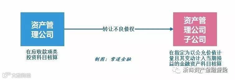 该模式较为简单,资产管理公司将“应收款项类投资”科目项下的不良债权出售给子公司,子公司接收后,将其放入“指定为以公允价值计量且其变动计入当期损益的金融资产”科目进行核算,通过将不良债权在不同会计科目中腾挪,规避资产减值准备的计提。