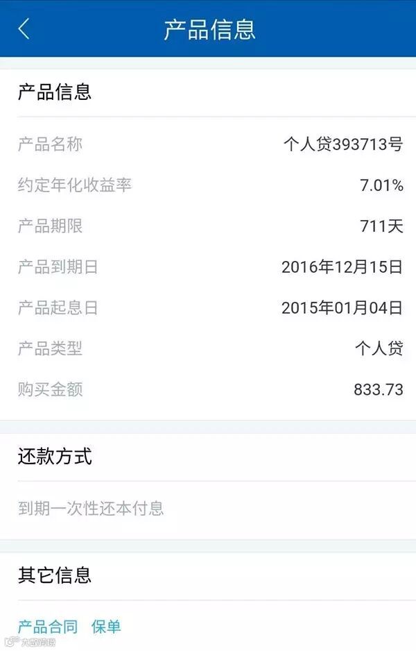 根据该投资者提供的产品合同,该投资者购买的是一款名为“个人贷393713号”的产品,产品起息日为2015年1月4日,到期日为2016年12月15日,然而到了15日,产品却无法变现。合同显示该产品类型为个人贷,纵观合同全文,也未提及“侨兴”二字。“买的时候只看了个人贷的信息”,该投资者向澎湃新闻表示。