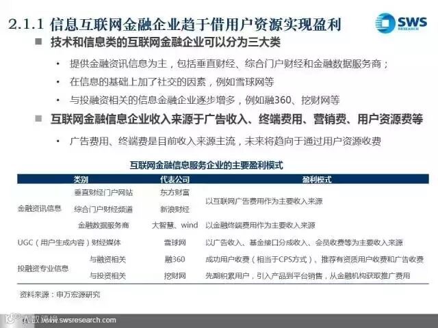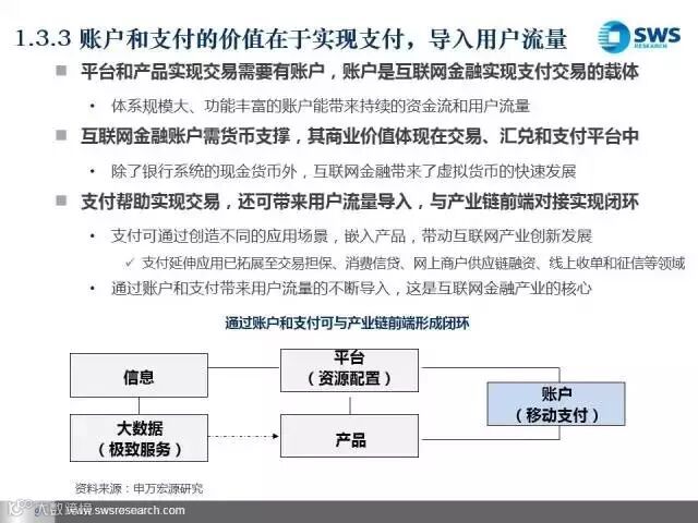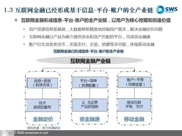 伴随着“互联网+”上升为国家战略,互联网金融蓬勃发展。互联网金融已经形成了信息—平台—账户的全产业链,商业模式呈现多元化。申万宏源发展研究部发布了《以用户资源为核心挖掘和创造价值——互联网金融产业链及商业模式解构》研究报告。