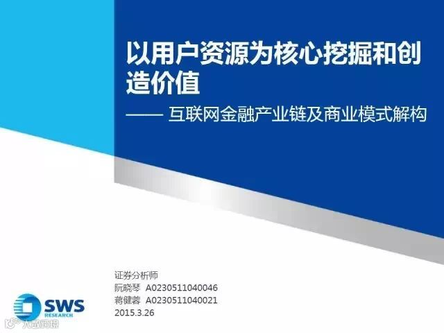 以下是《以用户资源为核心挖掘和创造价值——互联网金融产业链及商业模式解构》全文:
