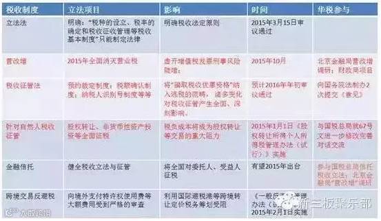 下面有一个表格,总结了去年以来我国正在推进的重要税制改革,我们所也参与了其中的几项,这些立法对投资、经营都带来了巨大的风险: