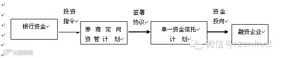 (1)由资金委托银行以同业资金/自有资金/理财资金委托证券公司成立定向资产管理计划;(2)证券公司定向资产管理计划作为单一委托人委托信托公司设立单一资金信托计划;(3)信托公司用受托资金向银行指定客户发放信托贷款,或者受让银行存量信贷资产。(4)计划结束,该笔委托贷款通过信托计划与证券资管计划由银行返还委托人贷款本金与利息。