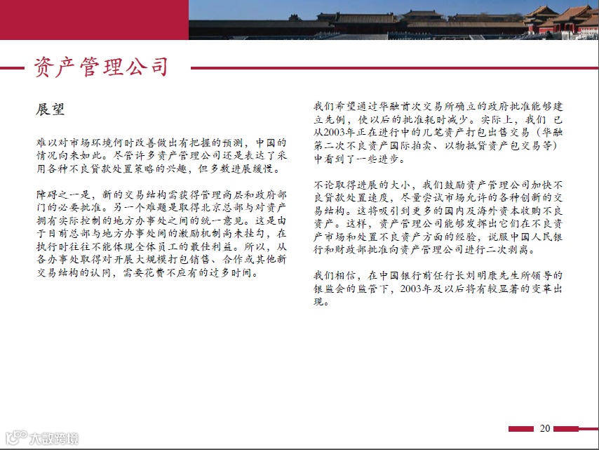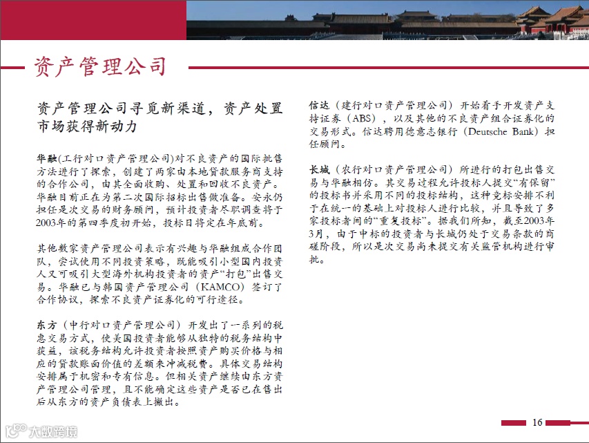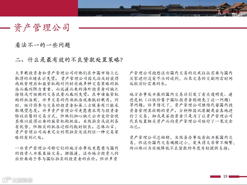 聚焦中国经济运行风险,精耕金融综合服务、不良资产整体解决方案等相关内容,通过专业筛选与深度分析,为金融资管业者提供及时而有价值的资讯。