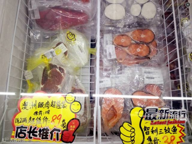 冷冻产品区域干净整洁,品种齐全,什么对虾、精品虾各种虾都有,看你喜欢吃哪种。南美对虾的价格也是便宜的惊人,35块钱就能买一斤。买几包放到家里,油焖、干煎怎么做都好吃。
