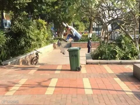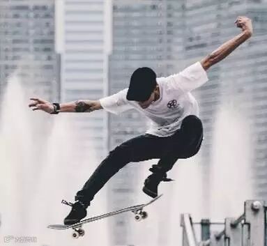 将踩着滑板在中欧城耍酷