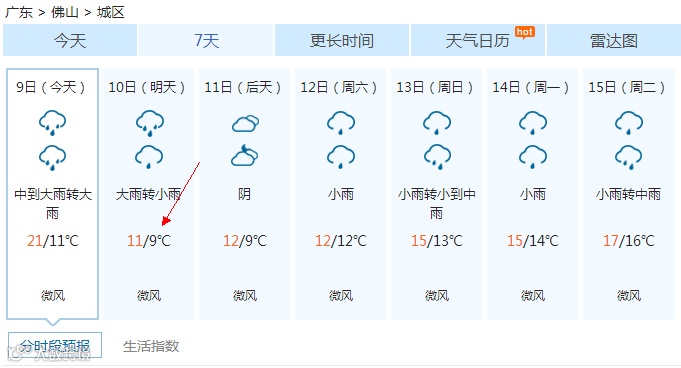 9号傍晚前冷空气全面进入乐从
