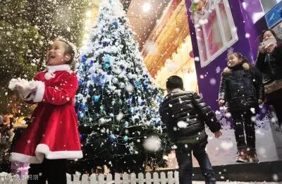 你在家里阳台晒着被子,我们在圣诞村晒着雪中合影