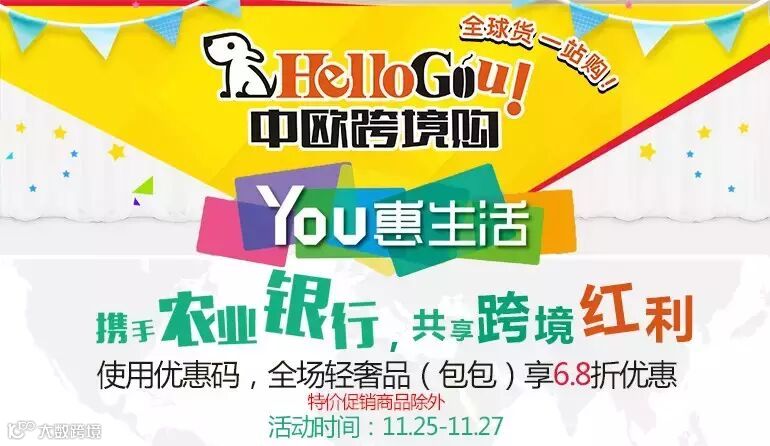 活动期间,在中欧跨境购平台(www.hellogou.com)上购活动指定商品,使用专属优惠码(abc95599)结算即可享受6.8折红利优惠。(特价商品除外)