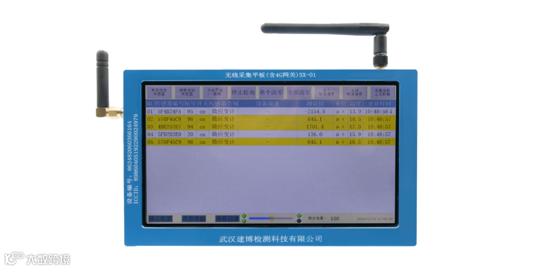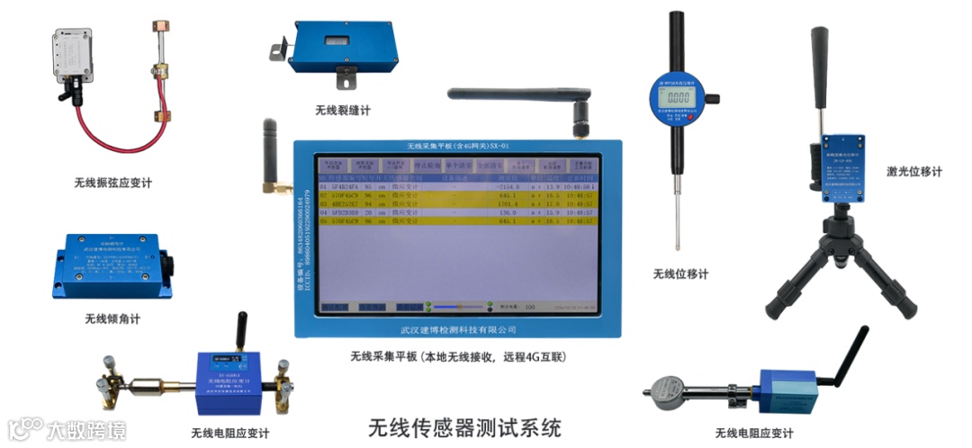 可现场采集无线应变、裂缝、各类型位移、倾角、温湿度、压力等多参数传感器。