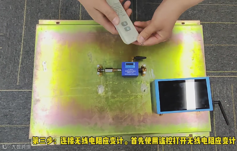 先按开无线应变计面板上面的开关键后,然后用遥控器打开应变计。