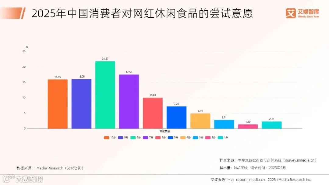2025年中国消费者对网红休闲食品的尝试意愿