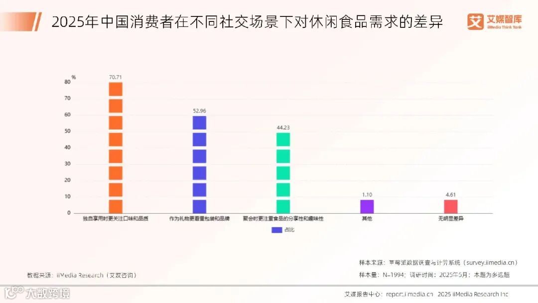 2025年中国消费者在不同社交场景下对休闲食品需求的差异