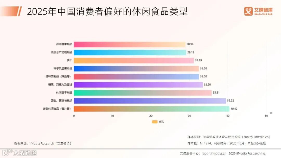 2025年中国消费者偏好的休闲食品类型