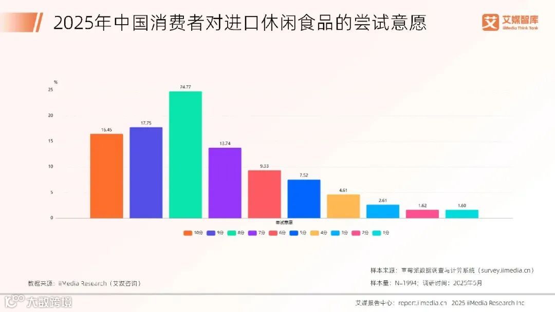 2025年中国消费者对进口休闲食品的尝试意愿