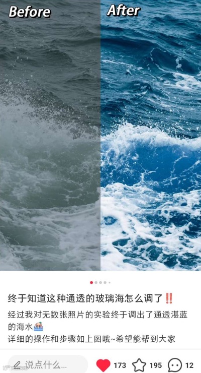比如,有个博主的封面,左边是原图:阴天拍的海边,海水是暗蓝色;右边是修完的图:海水带点蓝,还加了点阳光的感觉。