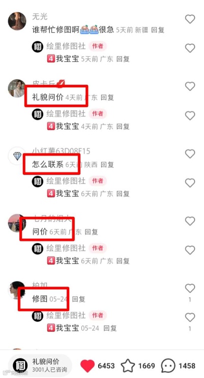 小红书上搜“PS修图”这个关键词,笔记有20多万篇,下面的评论区全是问价、怎么联系、礼貌问价、修图……