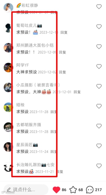 还说,预设导进PS就能用,不用改参数,评论区全是求预设,点赞量不高,但是,评论数量贼多,还涨了不少粉。