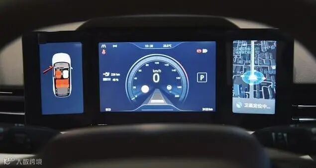 首先就是这个仪表盘的设计,分成了三块,两侧微微向里折,左侧主要显示车辆的一些状态信息,右侧主要显示导航和地图信息,中间主要显示车辆的各种行车信息,并且支持多种显示模式。这样的三屏布局让信息显示划分非常清晰,读取各类信息非常方便。
