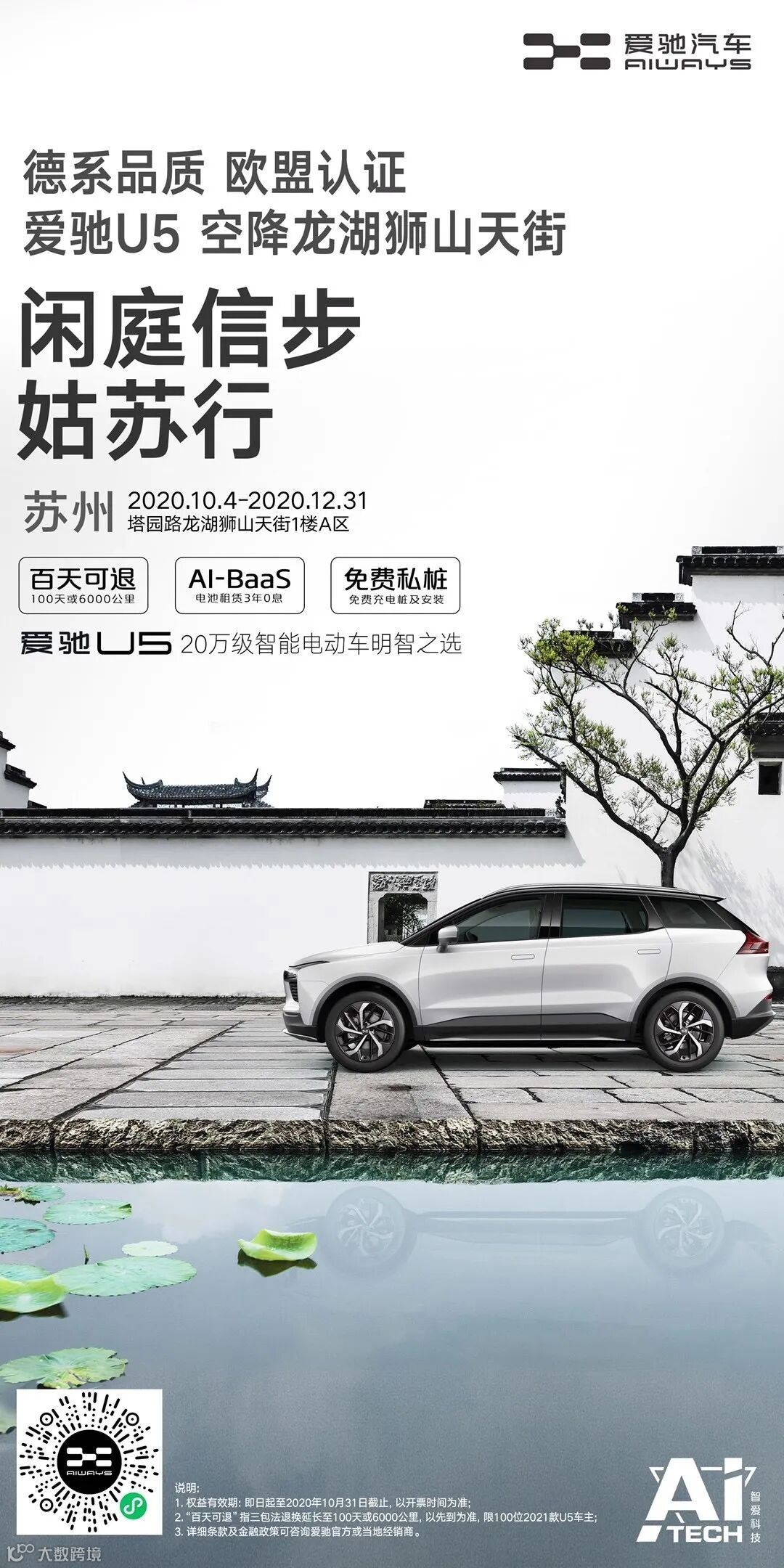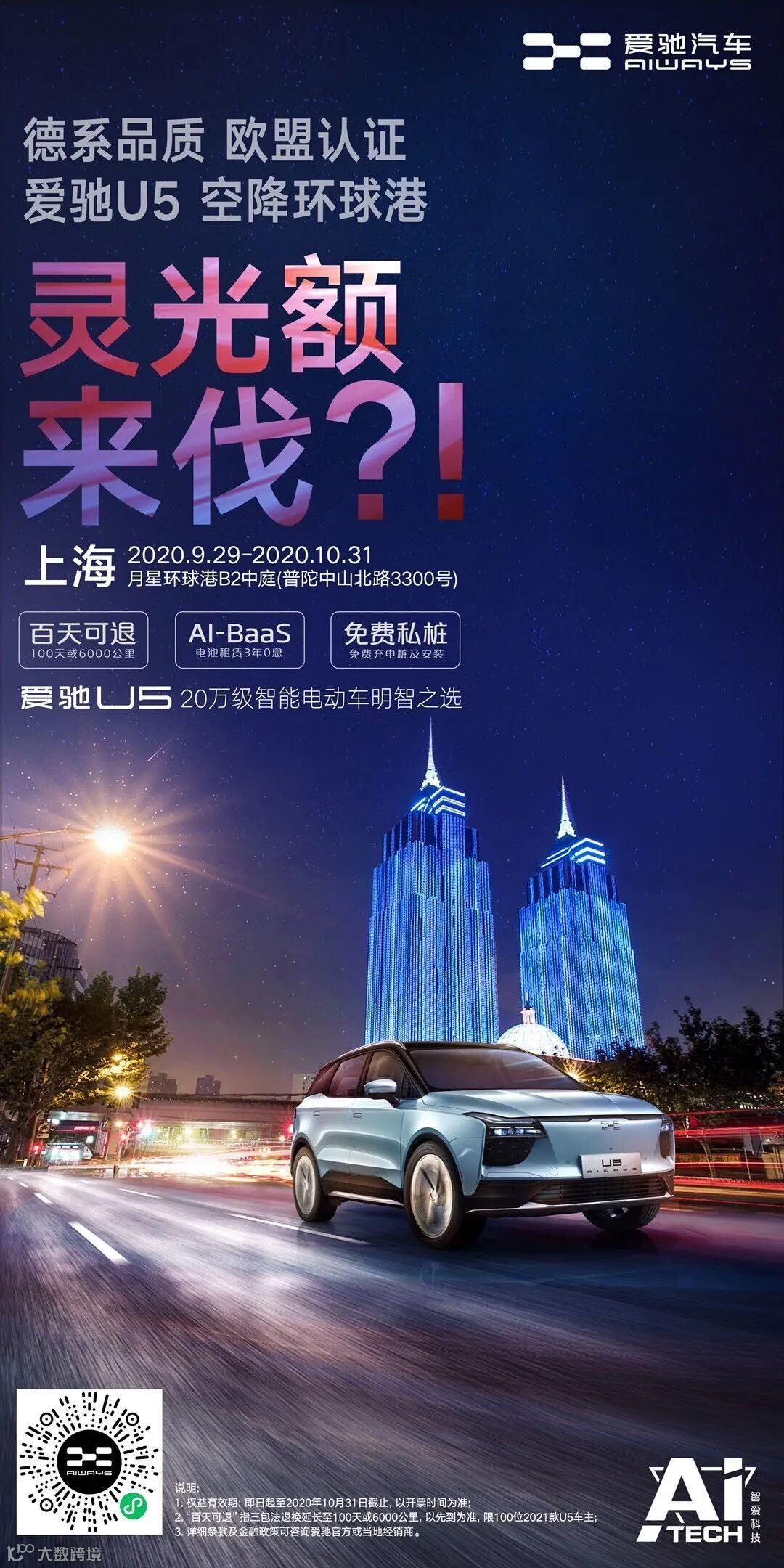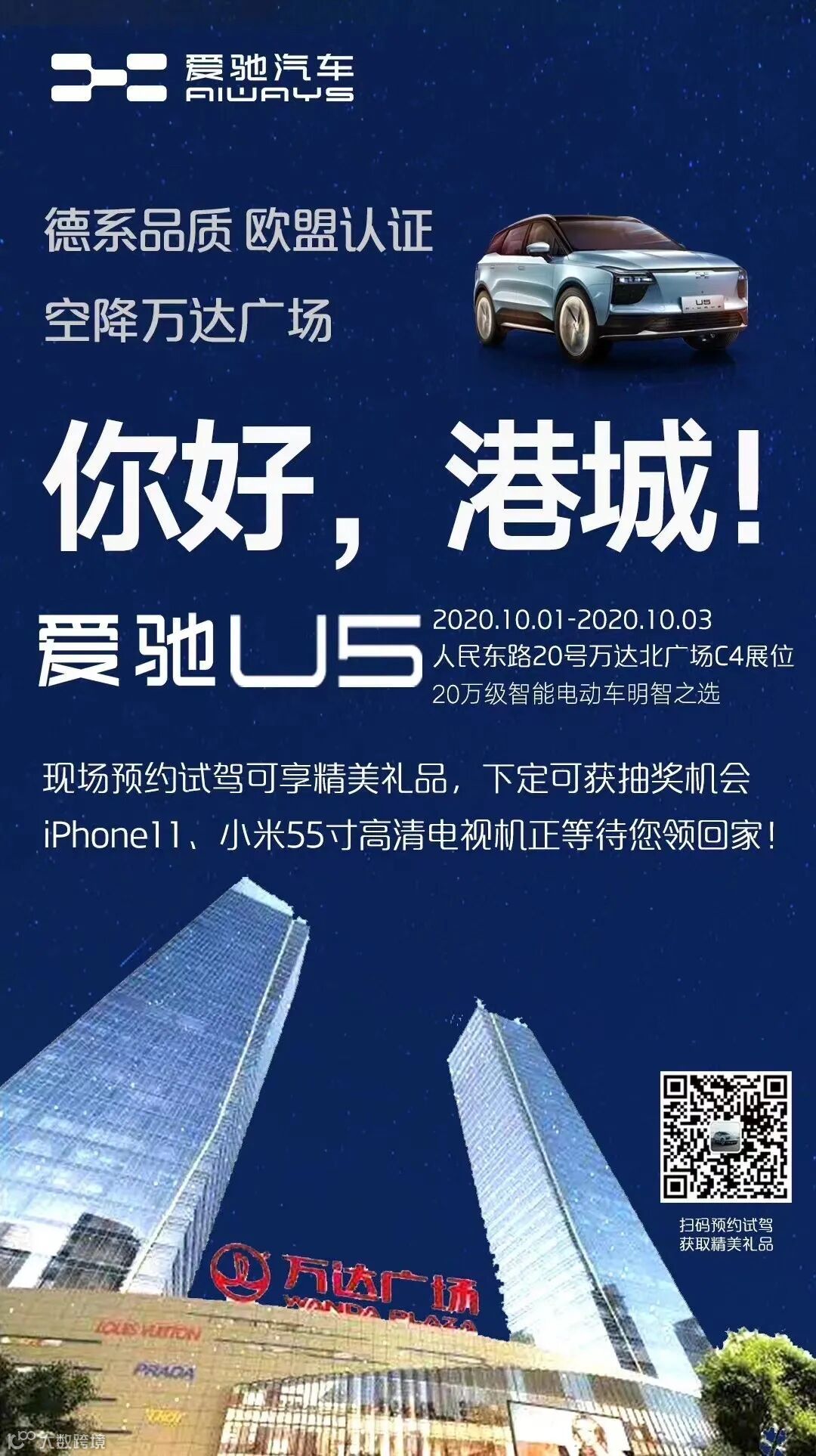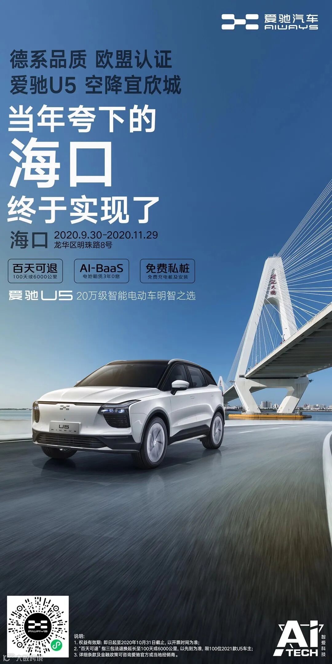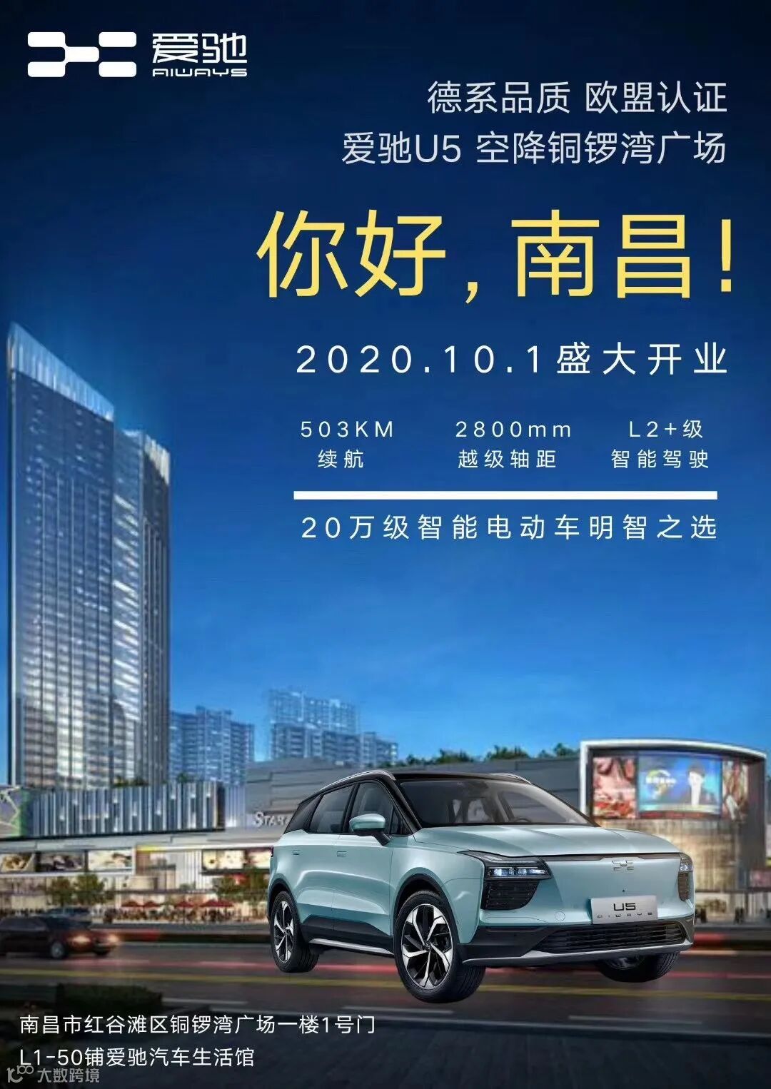 20万级智能电动车明智之选的2021款爱驰U5现已空降五城,精彩呈现,静候莅临: