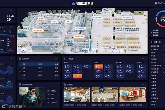 智厨环境监管系统实时监测后厨操作,规范炊事行为,从食材验收、加工到供餐全流程透明化,保障“舌尖上的安全”。