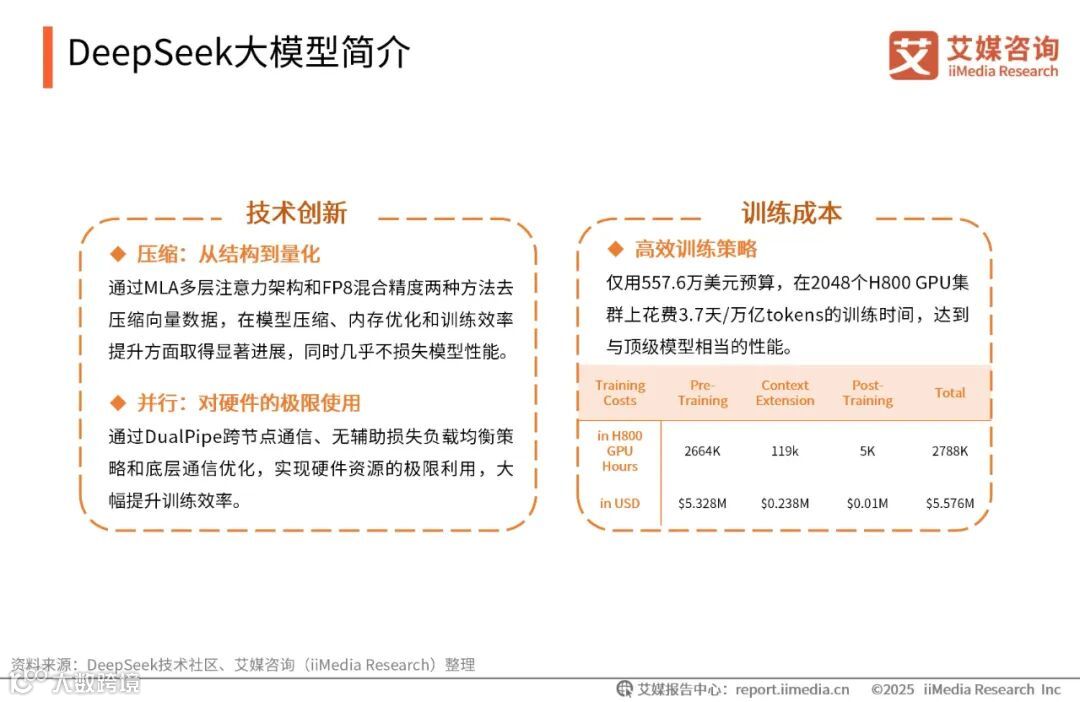 商业化与市场格局重塑:DeepSeek的商业化策略和市场表现显著,其低成本、思维链和开源特性重塑了AI商业化格局,推动AI Agent市场发展。高性价比的API服务在上线后日活跃用户数量不断增长,在全球多个国家和地区获得用户。在电信、金融、医疗等行业均有应用,助力企业实现智能化升级。