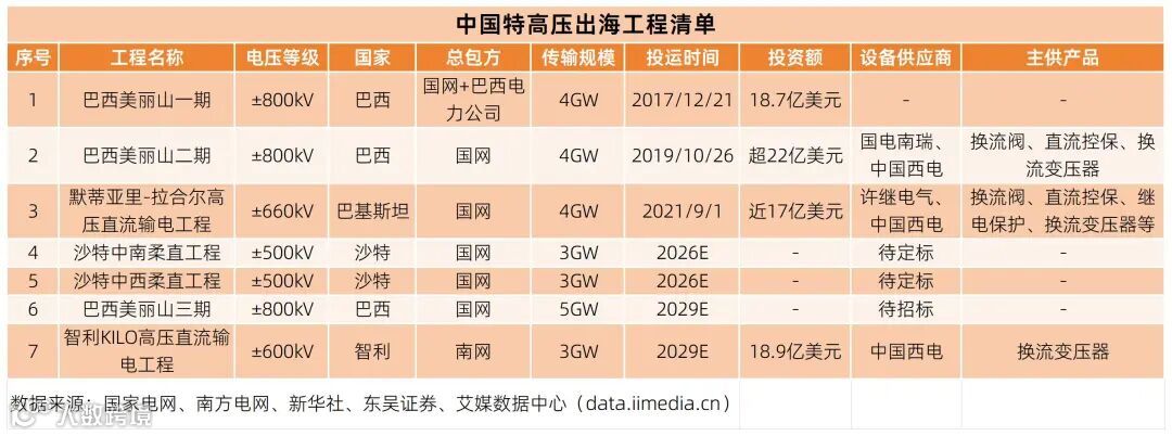 国电南瑞、许继电气、中国西电等国企作为特高压装备核心供应商,国内市场份额稳固,且在海外项目中持续突破——巴西美丽山三期、沙特柔直、智利KILO直流等项目相继由国网、南网拿下总包权,国企特高压“出海”已成为大趋势,沙特等优质市场的开拓有望为产业链持续发展注入弹性。