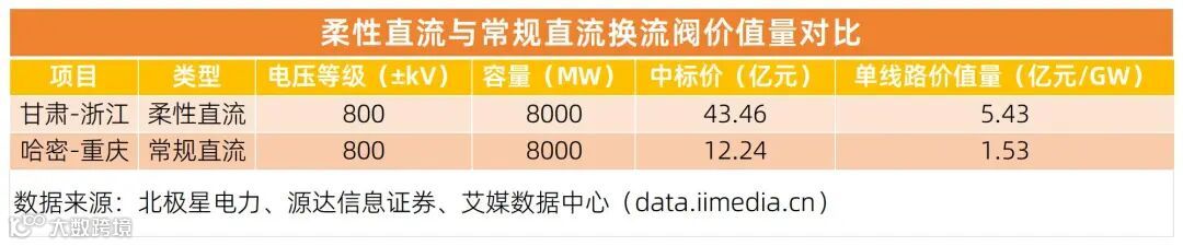 从价值量来看,常规直流特高压工程(如哈密-重庆线路)单GW换流阀价值量1.53亿元,而中国首条柔直特高压工程(甘肃-浙江线路)单GW换流阀价值量达5.43亿元,约为前者的3.5倍,随着柔直技术加速落地,换流阀市场空间有望加速提升。