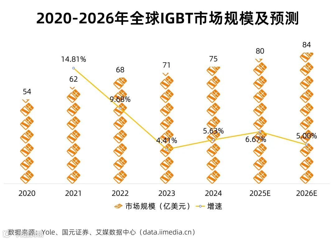 电子元器件与电源控制体现特高压设备智能化水平,是系统控制的“神经中枢”。IGBT(绝缘栅双极型晶体管)作为关键核心器件,2024年全球市场规模达75亿美元,预计2026年达到84亿美元,2023-2026年CAGR为5.85%。中国IGBT产量持续提升,国产替代成为发展趋势,早在2023年产量便达3624万只,自给率提升至32.90%,在人形机器人增量需求带动下,未来需求有望进一步释放。