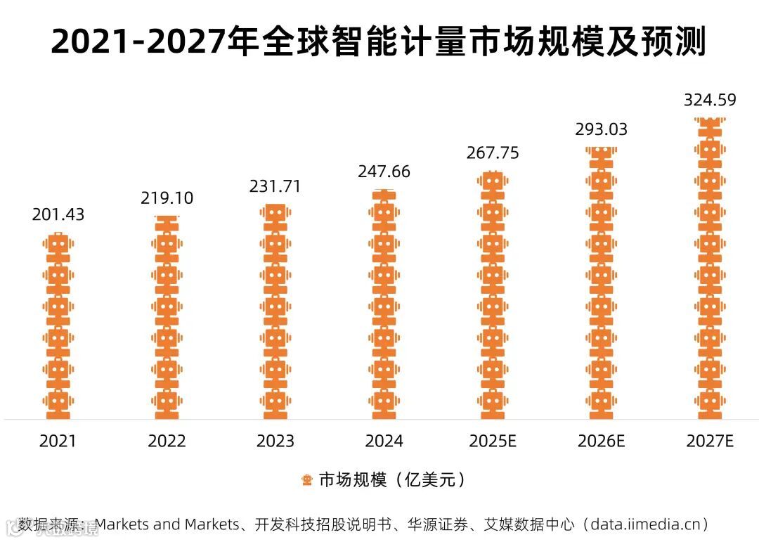 在电力需求稳定增长的驱动下,各国能源体系变革持续深化,全球智能配用电解决方案和产品采购量显著增加,加之电力系统结构变化带来的新特性,以及充电桩等应用场景的不断扩展,共同推动智能电网市场规模加速扩大。这一趋势也带动了智能计量市场的稳步增长,数据显示,全球智能计量市场规模有望从2022年的219.10亿美元增至2027年的324.59亿美元,复合增长率达8.13%。