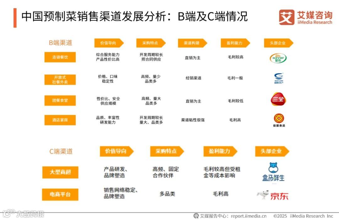 C端渠道指的是以零售平台为主要销售渠道,如大型商超和各类电商平台。在疫情特殊时期,预制菜这一面向C端市场的产品异军突起,成为食品行业的新宠。预制菜新品牌如雨后春笋般涌现,带有节庆性质的年菜产品更是受到了广大消费者的热烈关注。这一现象反映了人们在疫情期间对生活便利性的追求,也揭示了食品行业在创新和变革中的新趋势。在餐饮市场中,产品力和渠道力成为关键的成功因素。产品研发需要不断创新,以满足消费者日益多样化的需求;品牌塑造则需要注重形象建设和口碑传播,提升消费者对产品的信任度和好感度;销售网络的布局则需要考虑渠道的覆盖范围和物流的便捷性,确保产品能够及时送达消费者手中。