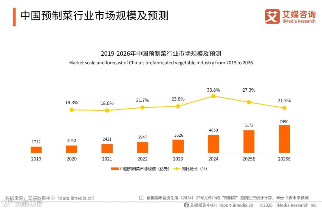 数据显示,2024年中国预制菜产业延续稳健增长态势,市场规模达到4850亿元,同比增长33.8%,预计2026年市场规模将突破7490亿元。预制菜产业作为农村一二三产业融合的重要载体,对促进农业增效、农民增收、推动餐饮行业标准化、满足消费者便捷化需求具有重要意义。
