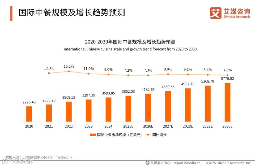 iiMedia Research(艾媒咨询)数据显示,2020-2024年,国际中餐规模从2275.48亿美元增长到3593.85亿美元,整体呈现上升趋势。艾媒咨询分析师认为,火锅、小吃等中餐品类广受海外消费者喜爱,中餐文化影响力逐渐增强,其健康、营养理念契合现代消费需求。同时,中餐产业链不断完善,食材、调味料等供应海外,为中餐发展提供有力支撑,助力国际中餐市场繁荣。