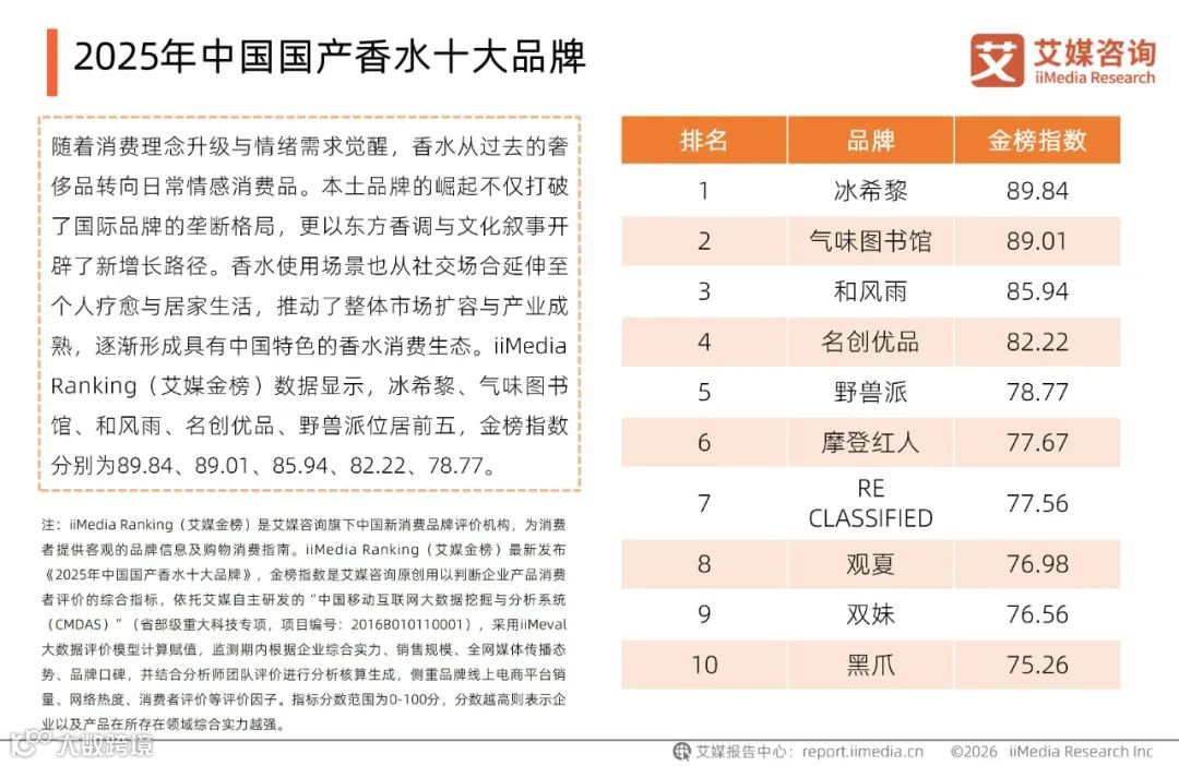 本文内容节选自艾媒咨询发布的《2026年中国香水行业研究及消费者洞察报告》,完整版报告共44页,艾媒智库会员可点击小程序或者文末阅读原文查看完整版报告。