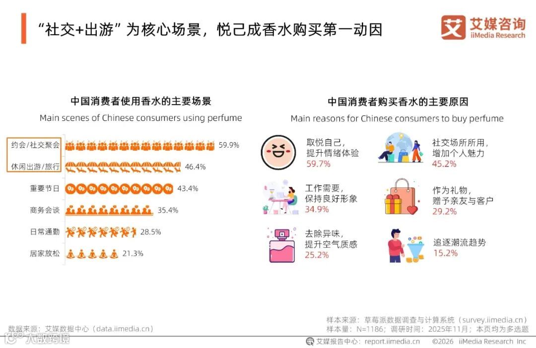 “社交+出游”为核心场景,悦己成香水购买第一动因