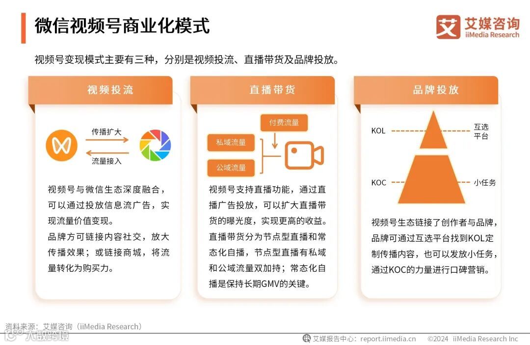 视频号推出了多项商业化工具,包括直播带货、观众打赏、付费内容推广以及广告互选等,为不同粉丝规模的内容创作者提供了丰富的变现途径。在当前的互联网生态中,商业化已成为维系创作者长期留存的关键因素。创作者生产的高质量内容是视频号在竞争激烈的短视频领域中吸引和维系用户关注的核心。因此,视频号的商业化步伐加快,对于建立一个可持续发展的内容生态系统具有重要意义。