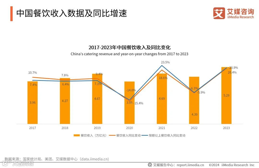 数据显示,2023年,中国餐饮收入5.29万亿元,同比上升20.4%;限额以上企业餐饮收入13356亿元,同比上升20.9%。2023年中国餐饮业在社会消费品零售总额中,增速领跑其他类型。餐饮业的快速增长为外卖行业带来了更多的机会,许多餐饮企业通过线上线下“双主场”的模式,挖掘餐饮消费潜能,外卖服务作为数字化转型的一部分,帮助企业增加收入、降低成本、提升效率。