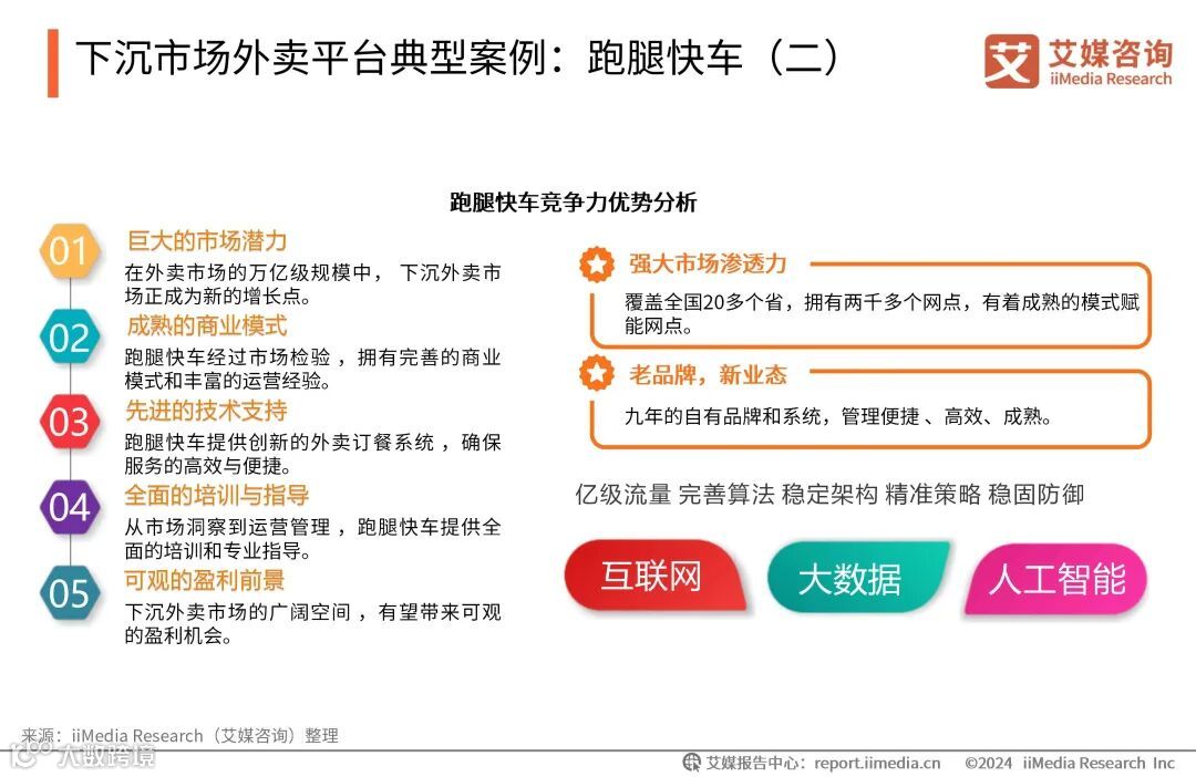 随着互联网普及程度的提高和移动支付的便捷性提升,下沉市场的外卖用户数量呈现出快速增长的态势,下沉市场有望成为外卖行业规模增长的新动力源。下沉外卖平台正逐步向多元化服务方向发展,开始涉足日用品、医疗用品等其他领域的配送服务。本土外卖平台如跑腿快车等推出了更加贴近当地需求的定制化服务,进一步满足了下沉市场外卖消费者的多元化需求。