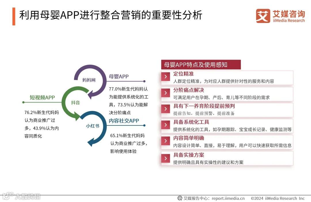 职场白领妈妈时间较为紧张,日常可能偏好使用内容社交APP和短视频APP,整合营销策略应充分利用这些平台的特点,如在内容社交平台上发布高效育儿知识、制作适合快节奏浏览的短视频内容,以及结合母婴APP等垂直平台,为职场白领妈妈提供从孕期到育儿的全方位支持。