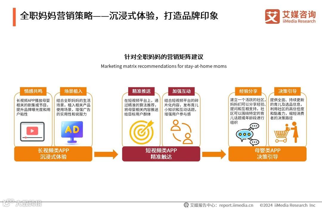 针对全职妈妈群体的媒体使用习惯,可以制定一个整合营销策略,通过长视频APP发布深度育儿内容以建立品牌权威,利用短视频APP快速传播吸引注意力的育儿小技巧,同时结合母婴APP提供的专业工具和系统化服务,全方位覆盖全职妈妈的信息接触点,实现品牌信息的有效传播和深度渗透。