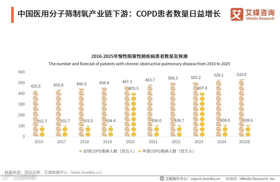 中国医用分子筛制氧产业链下游:COPD患者数量日益增长