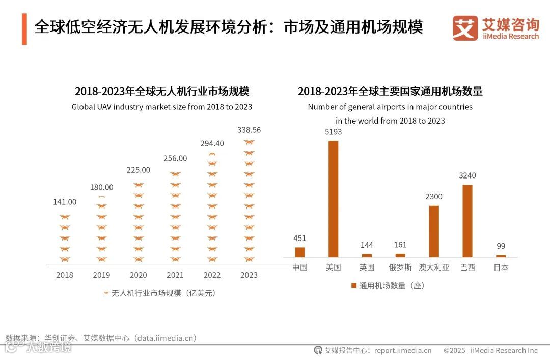 全球低空经济无人机发展环境分析:市场及通用机场规模