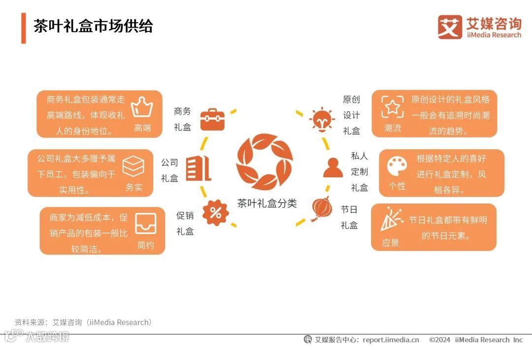 喝茶是中国人普遍存在的饮食习惯,加之茶叶本身就具有养生保健的功能,茶叶礼盒成为消费者的送礼佳选。消费者送礼的产品更多倾向于高品质的茶叶,而茶叶包装的精美可以在很大程度上彰显茶叶的品质。目前市面上的茶叶礼盒按照使用场景主要分为商务礼盒、公司礼盒、促销礼盒、原创设计礼盒、私人定制礼盒、节日礼盒等。