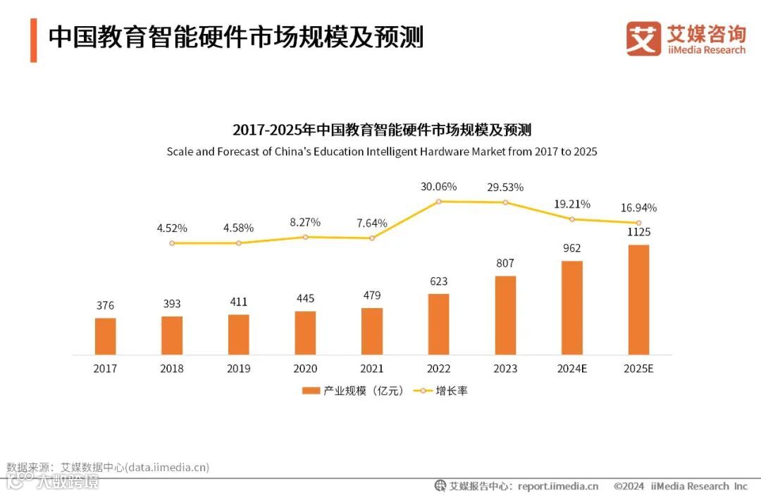 市场规模:预计2025年中国教育智能硬件市场规模超1000亿元