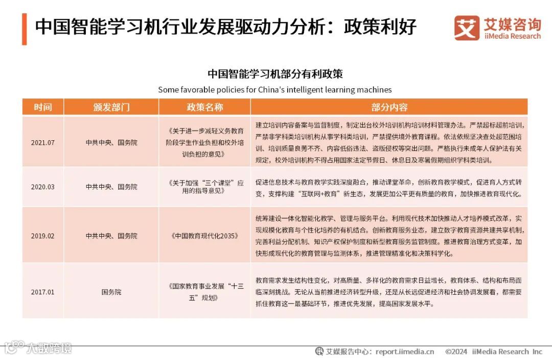 图表1.中国智能学习机部分有利政策