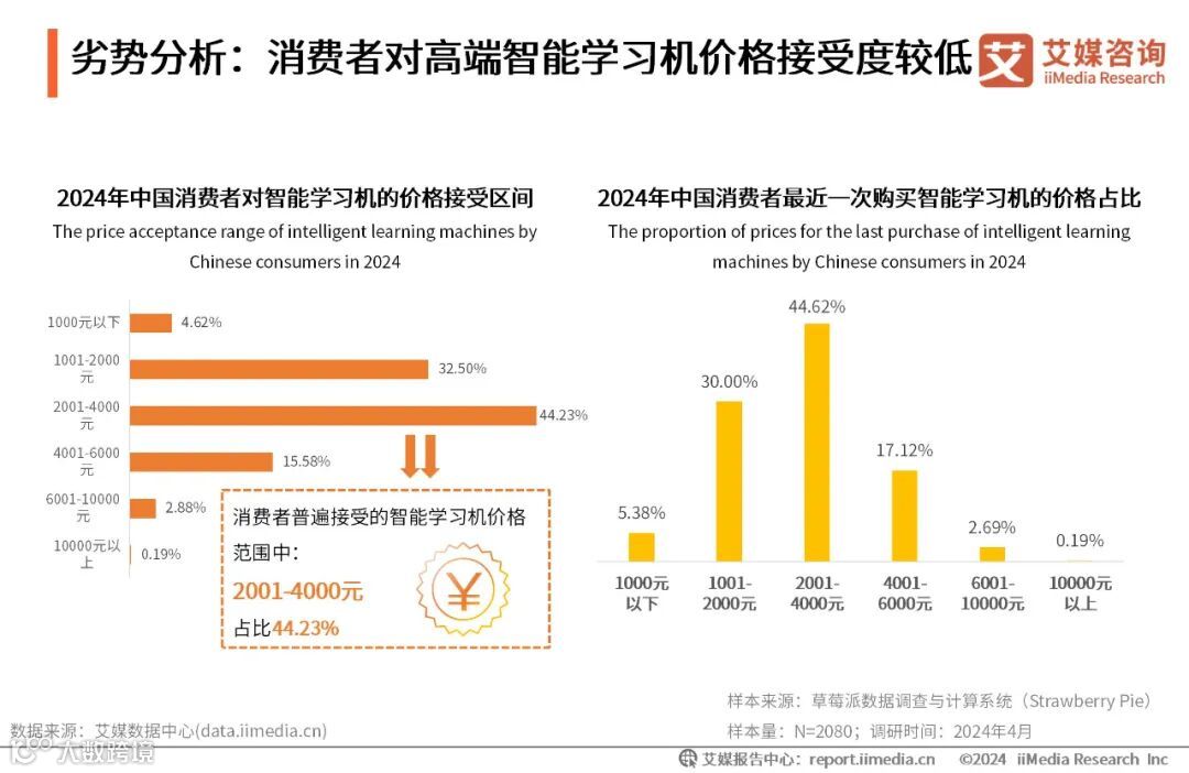 劣势分析:消费者对高端智能学习机价格接受度较低